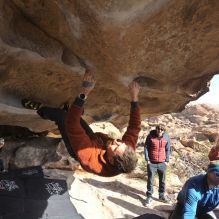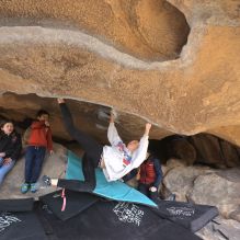 Blue Lizard Climbing and Yoga Hueco Tanks guiding on January 17, 2025, with Andre & Adrian, Elliott & Eme & Harper & Wren, Matt& Ruby& Shannon, and Spencer