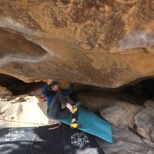 Blue Lizard Climbing and Yoga Hueco Tanks guiding on January 17, 2025, with Andre & Adrian, Elliott & Eme & Harper & Wren, Matt& Ruby& Shannon, and Spencer |