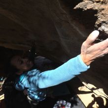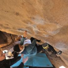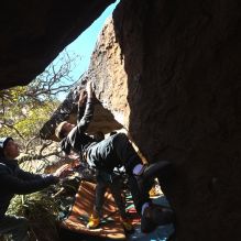 Blue Lizard Climbing and Yoga Hueco Tanks guiding on January 18, 2025, with Favia, Jordan, Spencer, Yibin, and Zach |